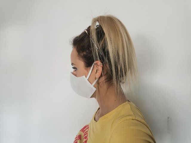 Maseczka wykonana w Polsce. Kształt tzw. pyszczek, dwuwarstwowa 50g – razem 100g/m2, Składa się z włókniny polipropylenowej tak jak w maseczkach chirurgicznych. Możliwość prania w temperaturze 60 stopni. Zalecenie – prasować przez bawełnę. Wymiary: rozmiar M – wysokość 13cm/ głębokość 11,5cm