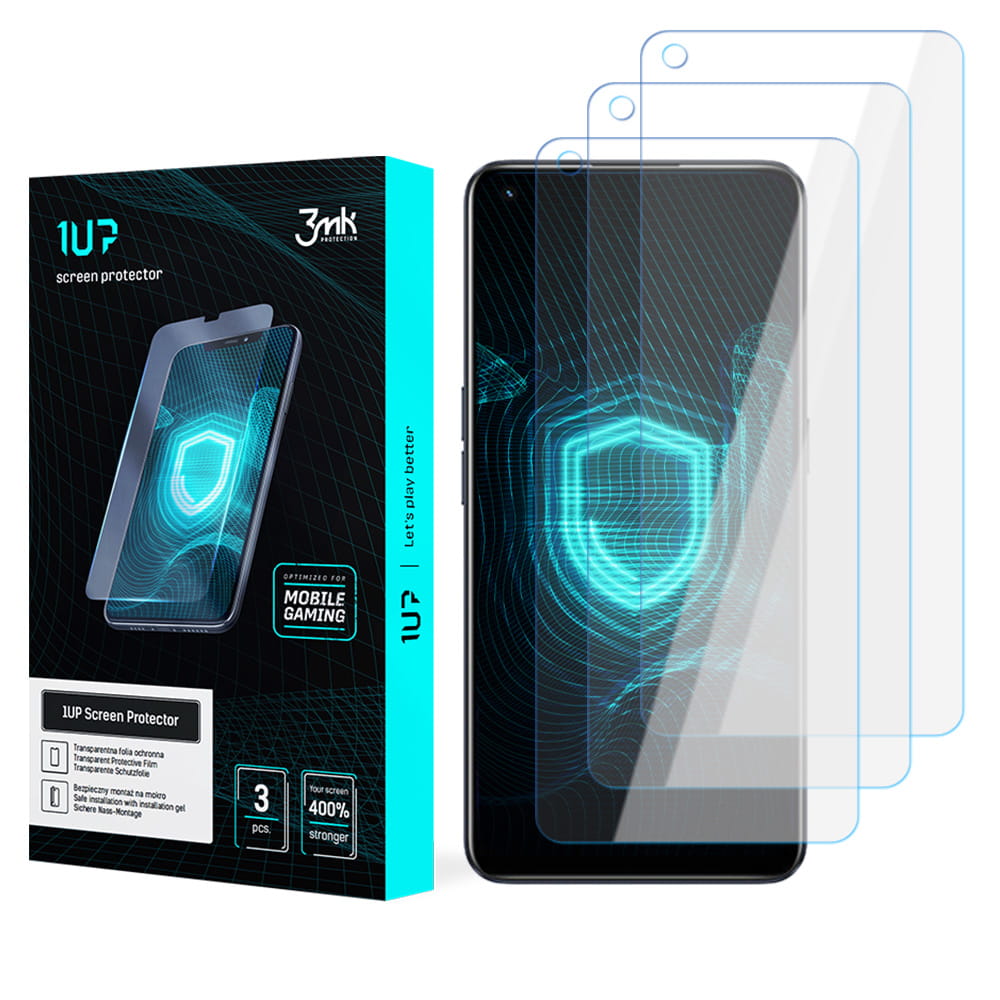 "3MK 1UP to folia stworzona z myślą o graczach, choć nie tylko. Jeśli spędzasz sporo czasu obsługując telefon to folia z powłoką oleofobową gwarantuje lepszą reakcję na dotyk, mniejsze przyciąganie kurzu i powstawanie smug na ekranie. Dla graczy przewidziano, że wytrzymałość warstwy oleofobowej to 20 000 cykli, czyli średnio 4 miesiące, dlatego w zestawie otrzymujemy 3szt folii. Folia 1UP to idealna propozycja do telefonów o zaokrąglonych ekranach, ""mokry"" sposób montażu za pomocą dostarczonego do zestawu żelu gwarantuje doskonałe przyleganie oraz łatwość aplikacji. 1UP to jedna z najgrubszych folii ochronnych na rynku 0,23mm, która gwarantuje wzmocnienie ekranu do 400%. Zestaw zawiera: - 3szt. folii 1UP - Anti-Bubble Card - do usuwania pęchrzy powietrza - żel do montażu - 3 szt. Cleaning Set (ściereczki czyszczące)"
