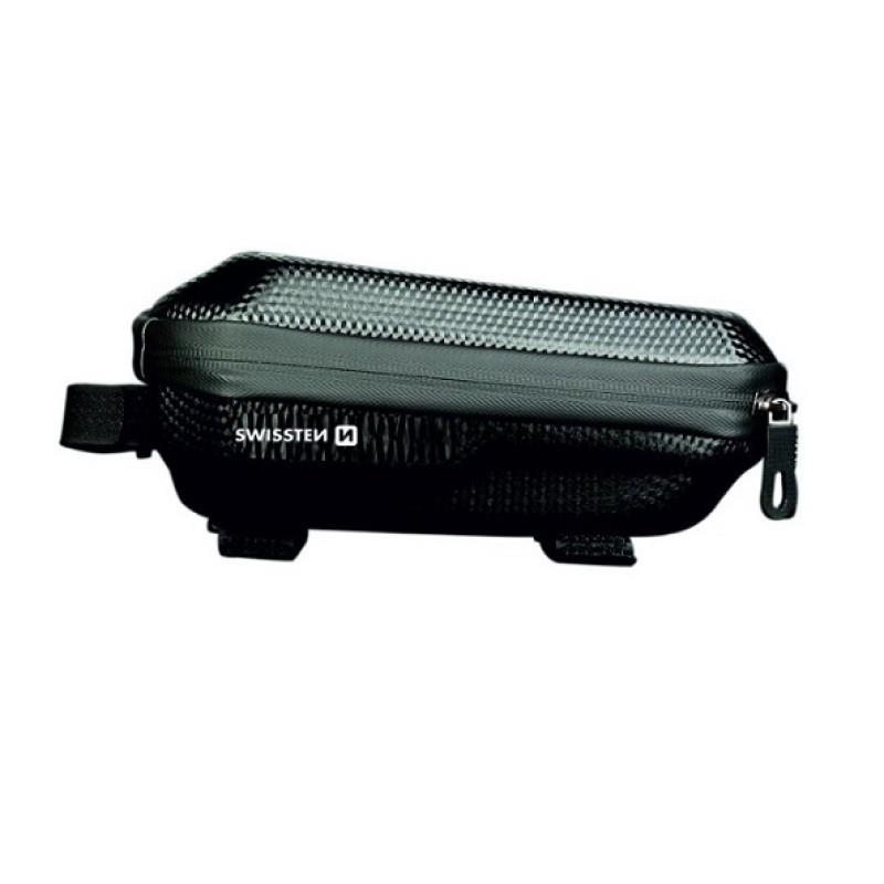 Wodoodporny case rowerowy z dużą przestrzenią do przechowywania. Pokrowiec jest mocowany do ramy roweru za pomocą dwóch zapięć na rzepy, a trzeci rzep mocuje się do wspornika kierownicy. Case posiada wystarczająco dużo miejsca na rzeczy osobiste, a także zapasową dętkę lub power bank. Etui zostało wykonane z solidnego materiału, dzięki czemu zarówno smartfon, jak i inne rzeczy wewnątrz etui są maksymalnie chronione przed ewentualnymi uszkodzeniami.