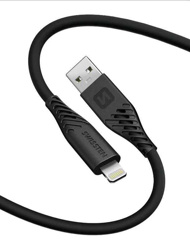 KABEL SWISSTEN SOFT SILICONE USB/LIGHT 1,5m 60W CZARNY