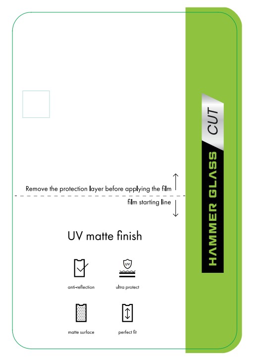 Folia Hammer Glass UV Matte Finish to zaawansowana folia ochronna przeznaczona do plotera Hammer Glass Cut o matowym wykończeniu, doskonale chroniąca ekran przed zarysowaniami, smugami i odbiciem światła. Idealna do cięcia maszynowego, gwarantuje doskonałą estetykę i funkcjonalność nawet w najbardziej wymagających warunkach.