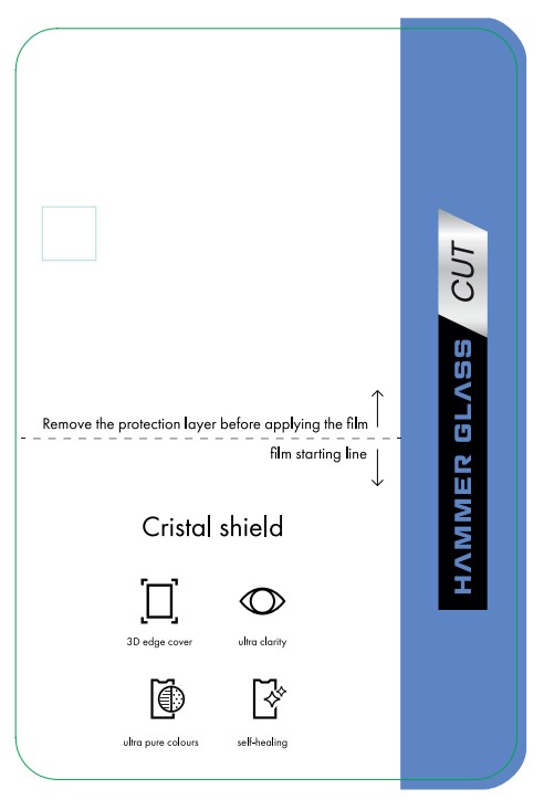 Folia Hammer Glass Cristal Shield to folia ochronna przeznaczona do plotera Hammer Glass Cut, zaprojektowana do zabezpieczenia ekranów urządzeń mobilnych, w tym modeli z zaokrąglonymi krawędziami.