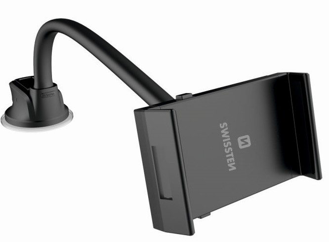 Uchwyt samochodowy do tabletu SWISSTEN S-GRIP T1-HK przeznaczony jest do montażu na szybie lub desce rozdzielczej. Szczęki uchwytu mają rozstaw aż do 185 mm. Posiada gęsią szyję o długości 36 cm.